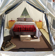 • Safari style tent on a wooden raised deck.